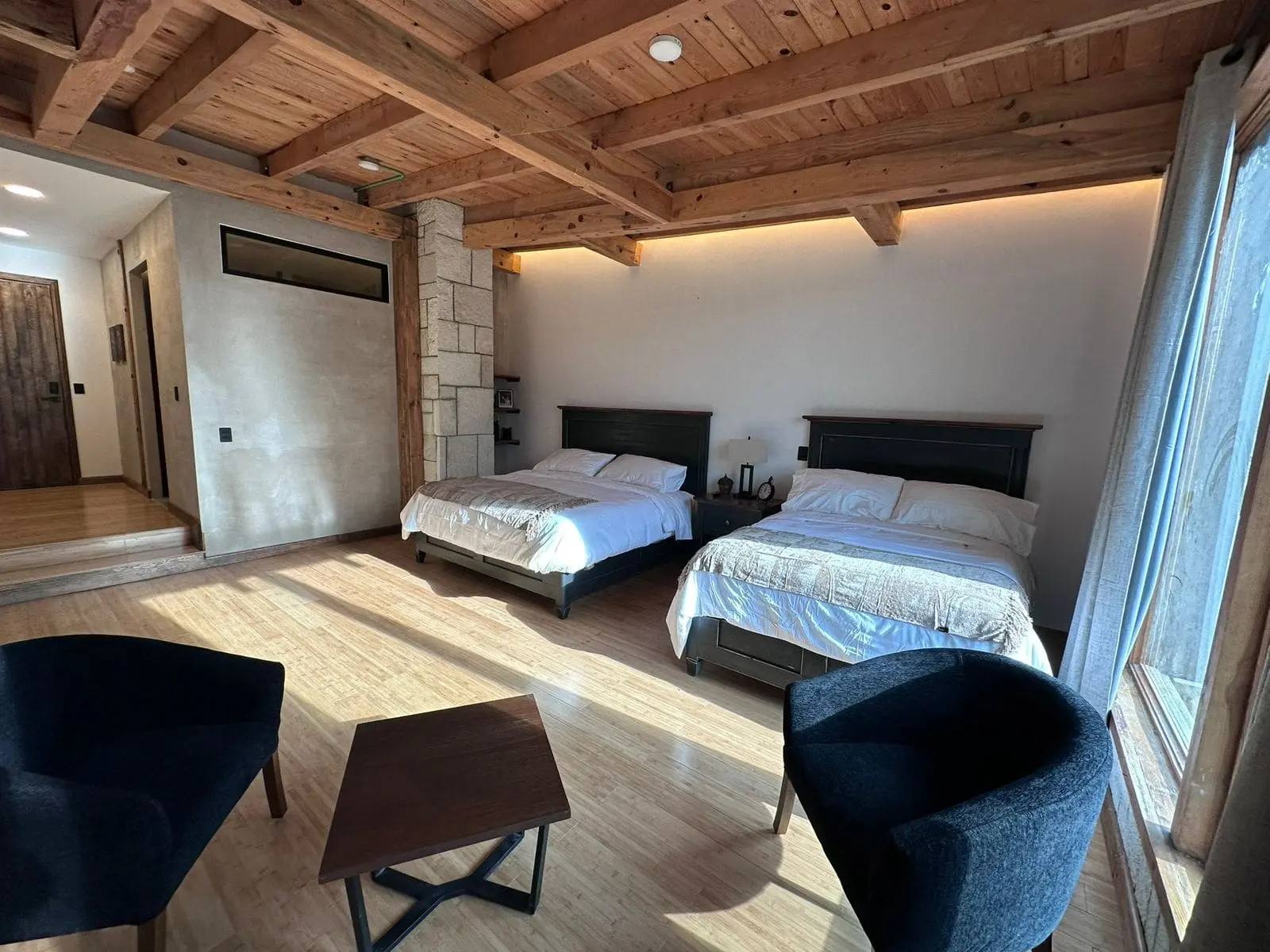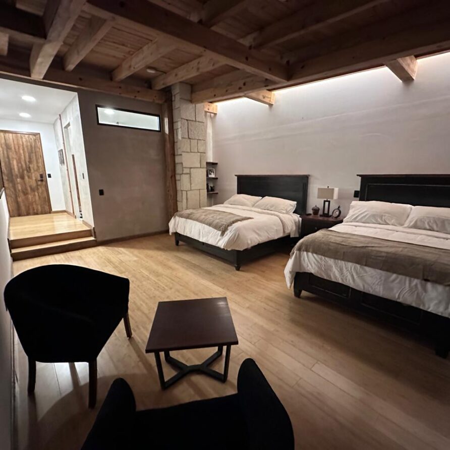 Amplia y llena de carácter, la Suite Cueva del Oso combina calidez, diseño y una vista privilegiada al jardín, la Peña de las Monjas y la iglesia. Cuenta con una cama king y una queen, baño completo y detalles acogedores que invitan a relajarse. Es perfecta para familias pequeñas o parejas que buscan espacio, comodidad […]