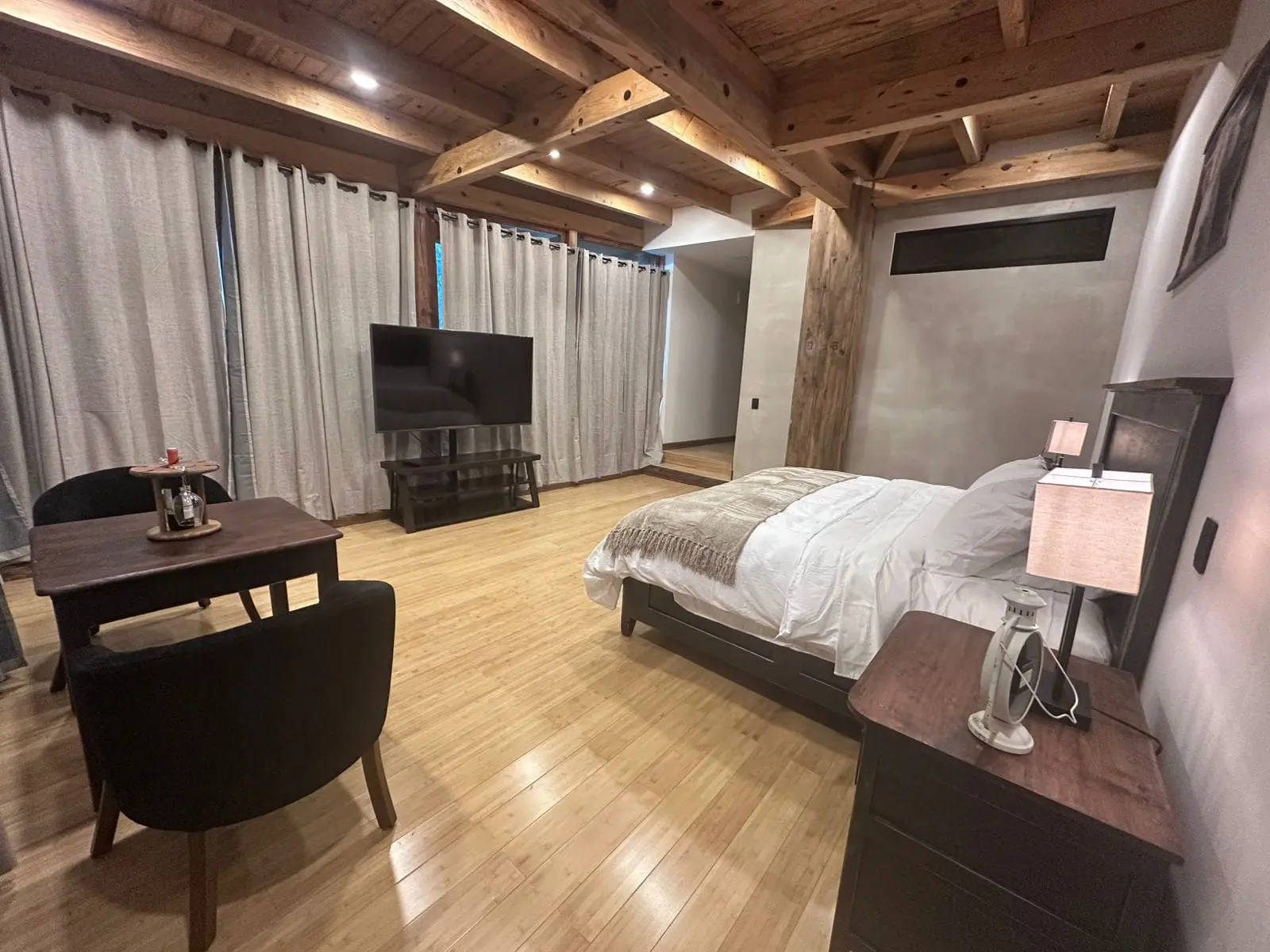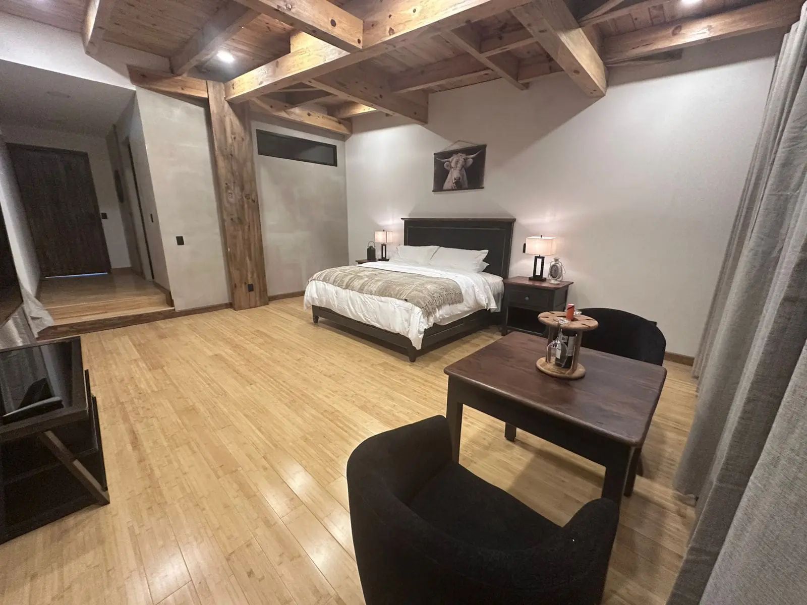 Amplia y elegante, la Suite El Toro ofrece una vista panorámica inigualable del jardín, la Peña de las Monjas y la iglesia. Su cama king size, su baño completo y su estilo cálido combinan confort y encanto rústico. Es el espacio ideal para quienes buscan privacidad, descanso y una experiencia única en el corazón de Mineral del Chico.